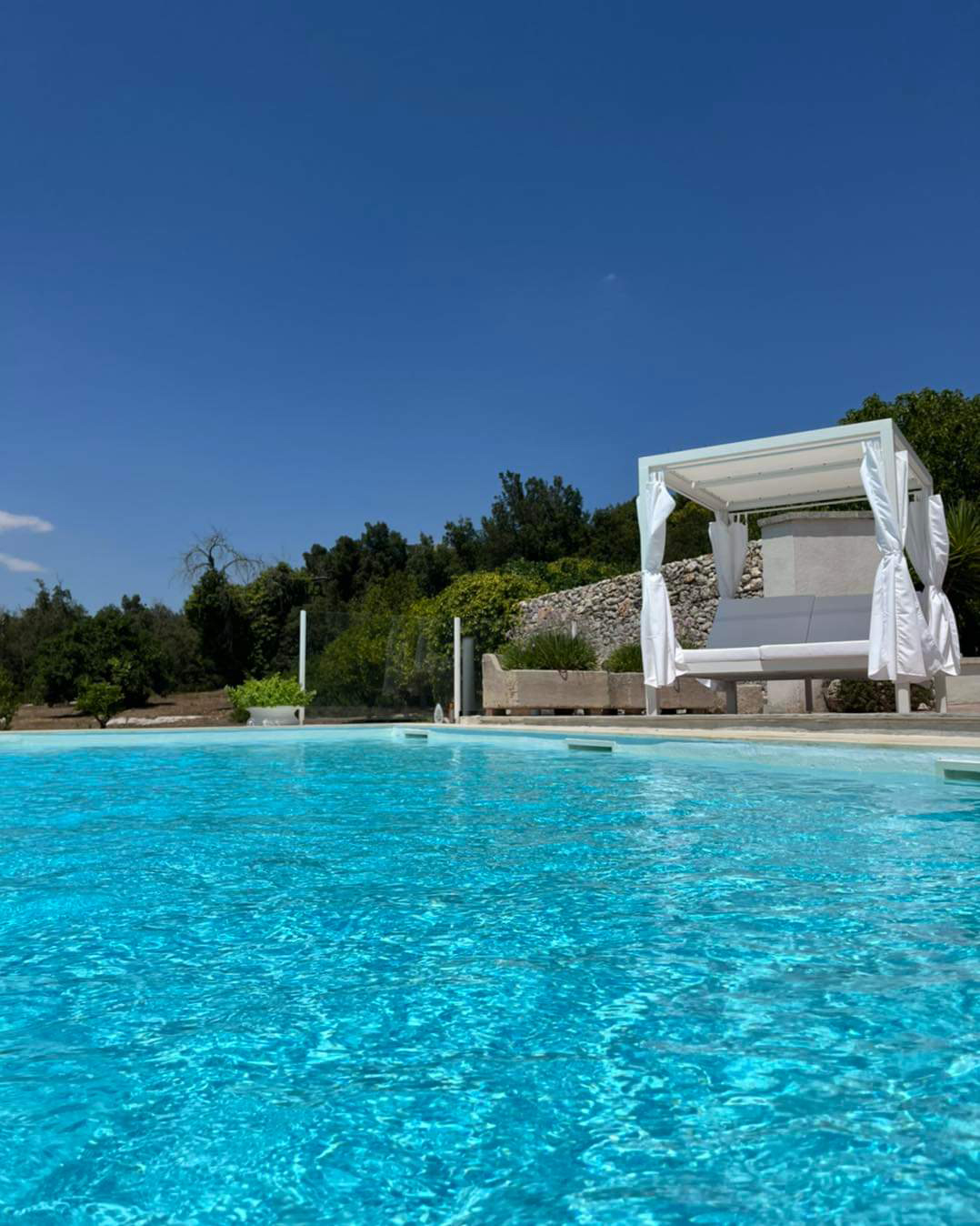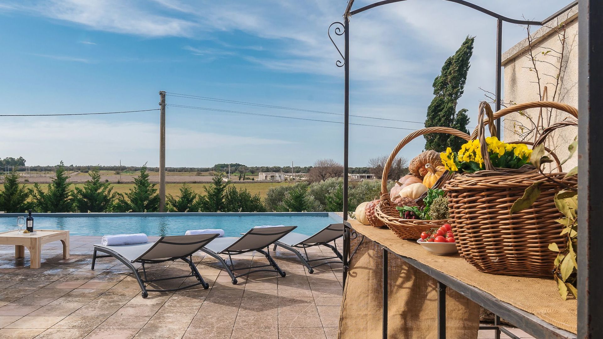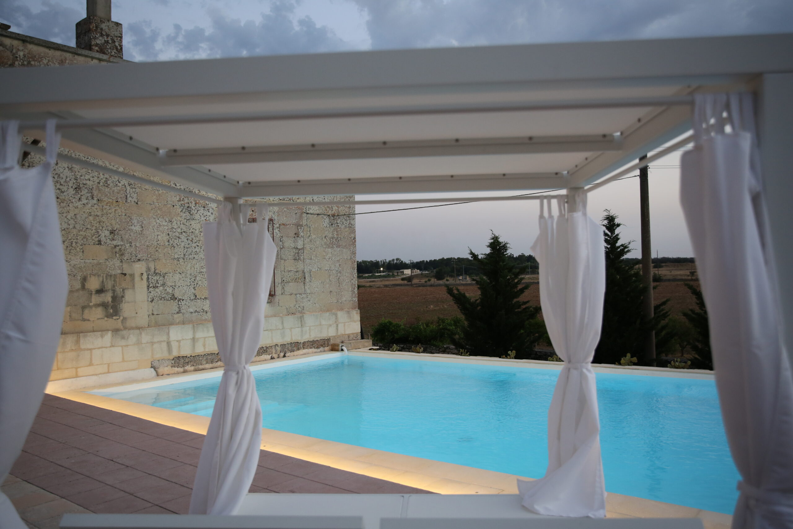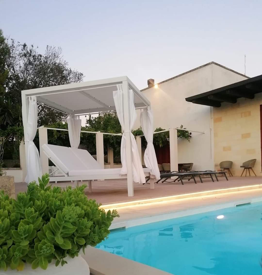 Affitto Casa Vacanze nel Salento, cinque ampie camere da letto con spaziosi sevizi, possono accogliere sino a dodici persone. Dispone di ingresso, soggiorno, sala da pranzo, sala colazione, cucina, bagno di servizio/lavanderia, giardino, solarium, piscina privata, circondata da un parco di circa dieci ettari, visita il sito per conoscere i dettagli.